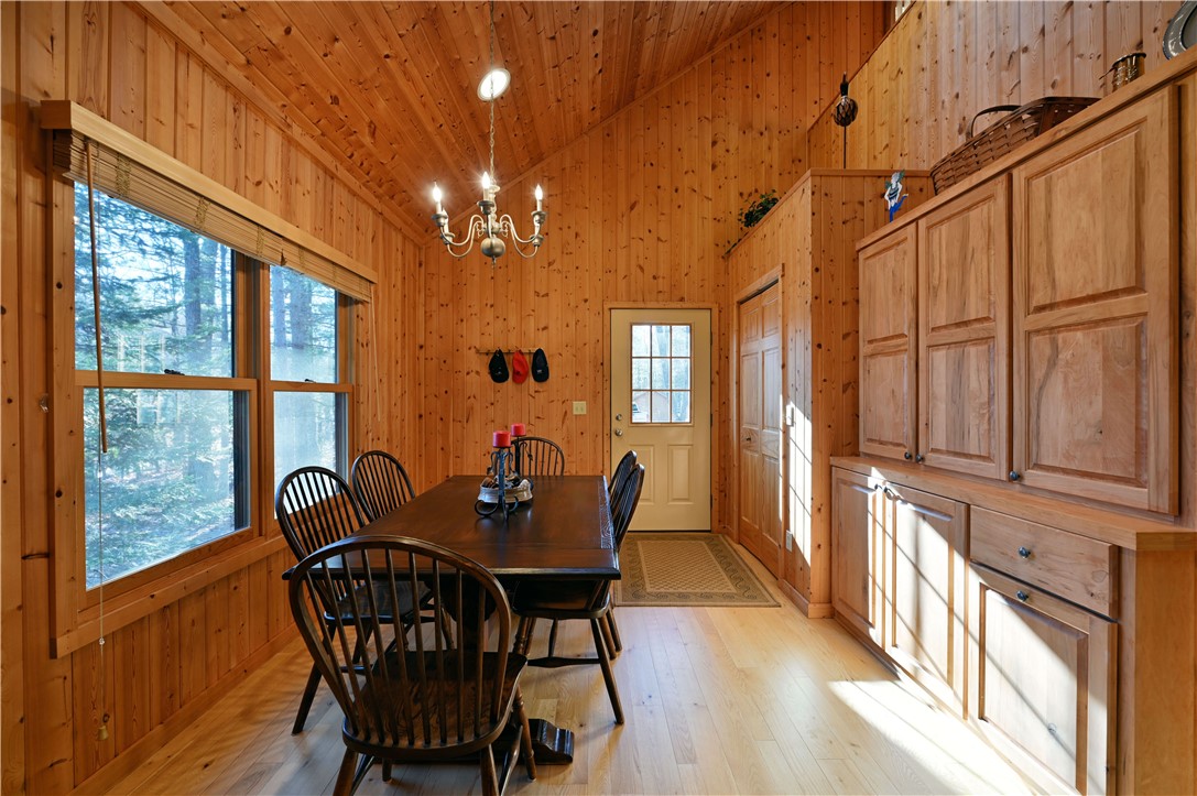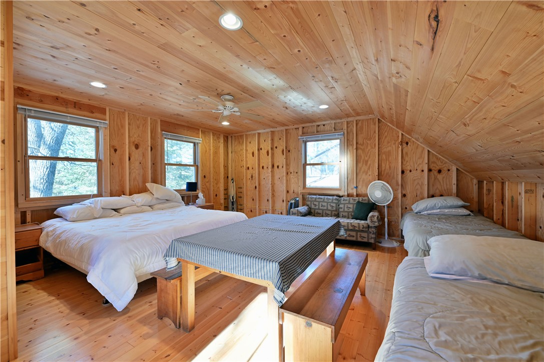 Introducing a lakeside paradise like no other! Situated on 800 ft of the pristine shores of Crystal Lake, this property boasts not one, but two inviting getaway cabins, creating an idyllic haven for multiple families to unwind and create lasting memories. Dip your toes into the sandy swimming area or catch a walleye from the pier. As the sun sets, experience breathtaking views that paint the sky with hues of orange and pink, casting a warm glow over the tranquil waters. The property has been subdivided into two parcels with a home, well and septic on each plus a third, non-buildable out lot. While it is being sold as one, the legwork has been done to subdivide should the next owner desire. This retreat isn't just a property; it's an opportunity to escape to the forest of northern Wisconsin and enjoy the year-round activities of your choice.
